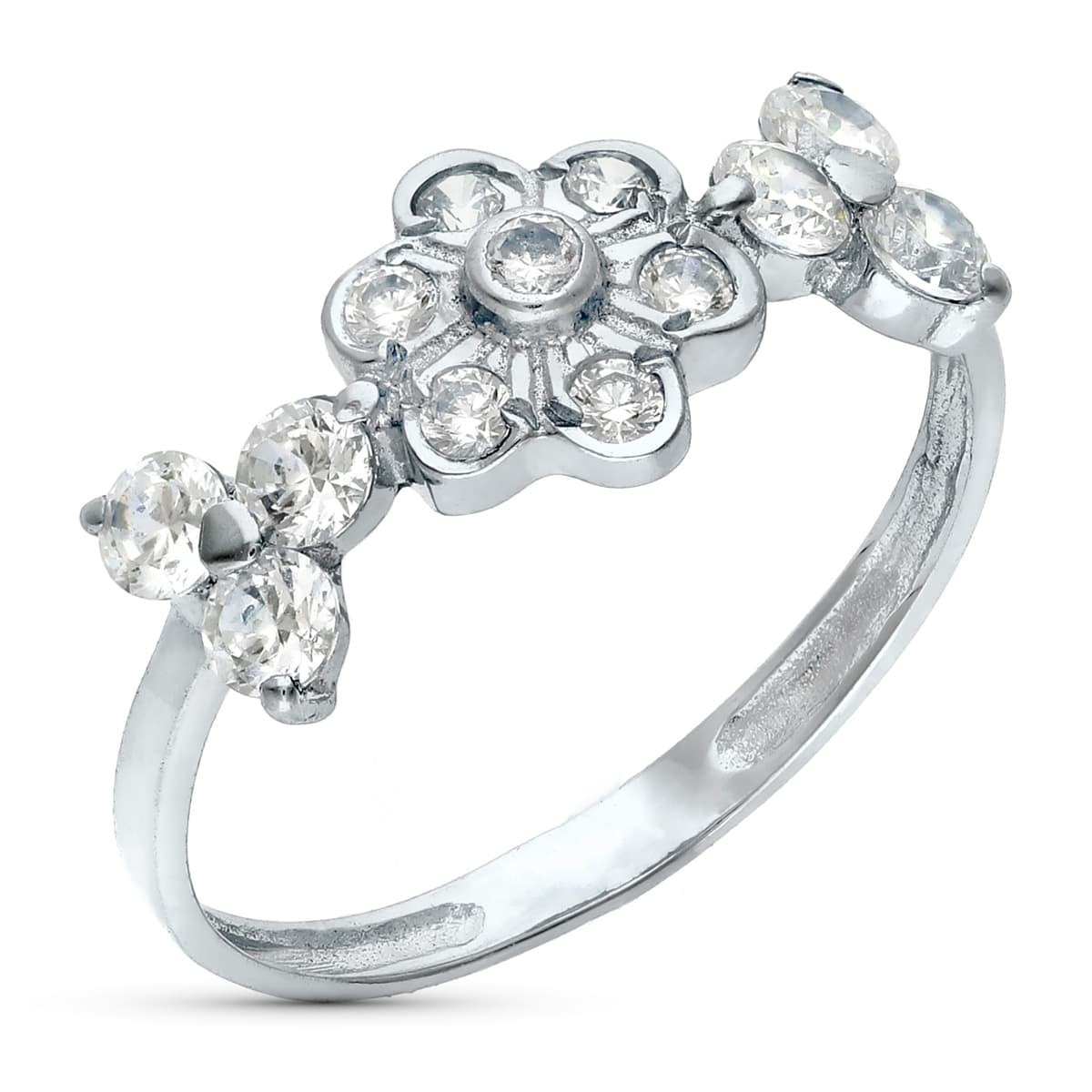 18K SORTIJA ORO BLANCO FLOR CON CIRCONITAS. ANCHO 7 MM