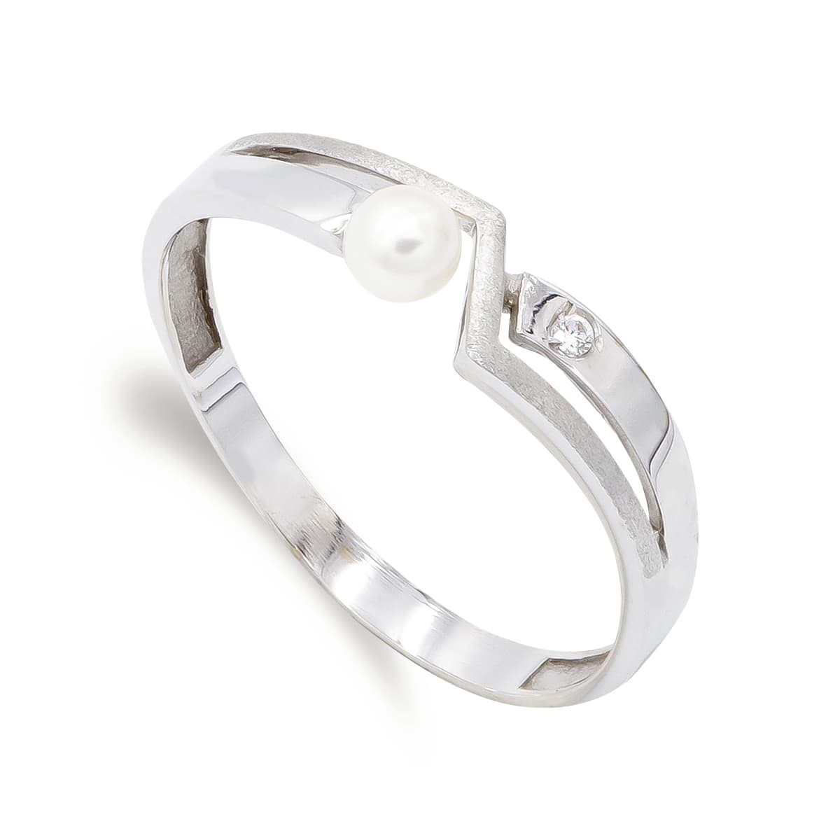 18K SORTIJA ORO BLANCO PERLA 3;5 MM Y CIRCONITA. ANCHO: 4;5MM