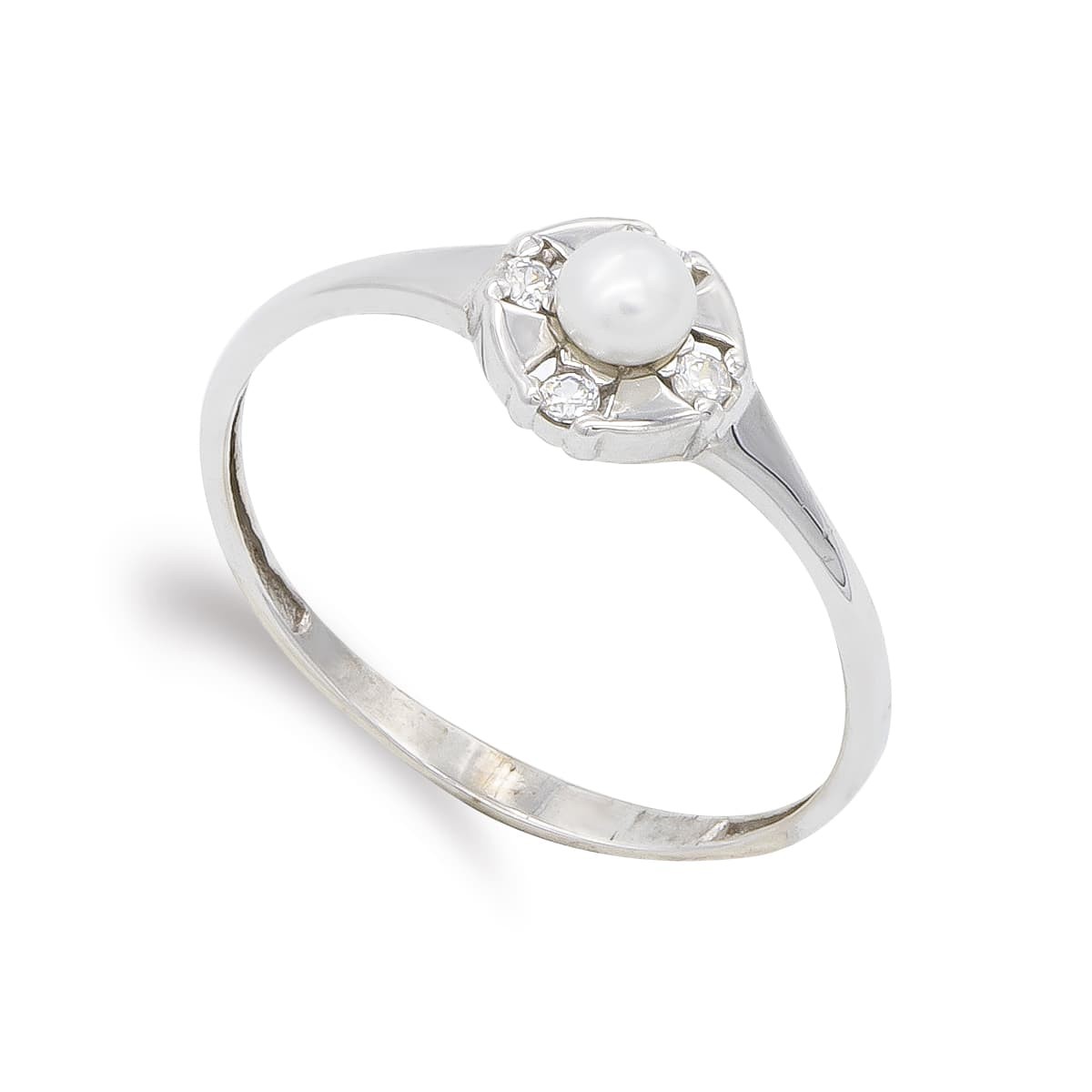 18K SORTIJA ORO BLANCO PERLA 3MM Y CIRCONITAS. ANCHO: 6;5 MM