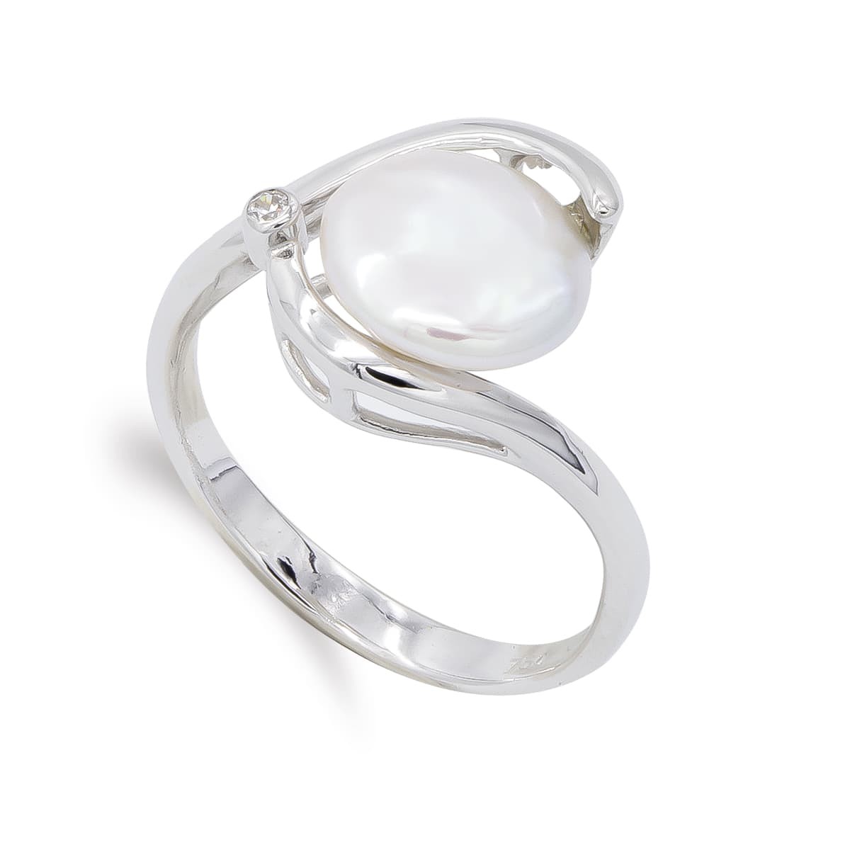 18K SORTIJA ORO BLANCO Y PERLA BOTON 9 MM