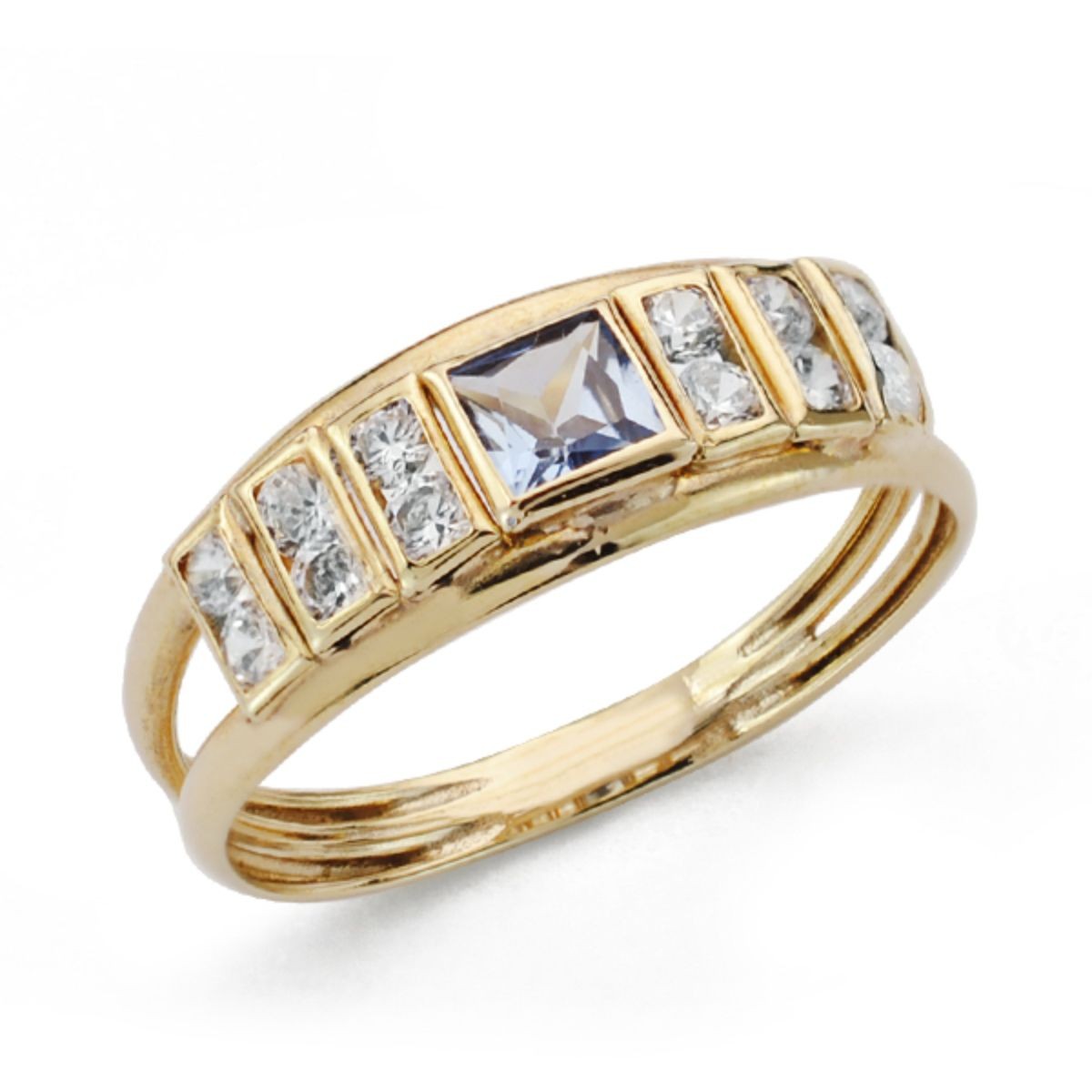 9K SORTIJA ORO AMARILLO DOBLE CUERPO CON AMATISTA CUADRADA Y CIRCONITAS. ANCHO: 6 MM