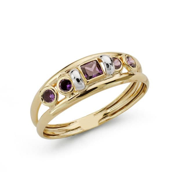 9K SORTIJA ORO AMARILLO DOBLE CUERPO CON AMATISTA CUADRADA Y REDONDAS. ANCHO: 5 MM