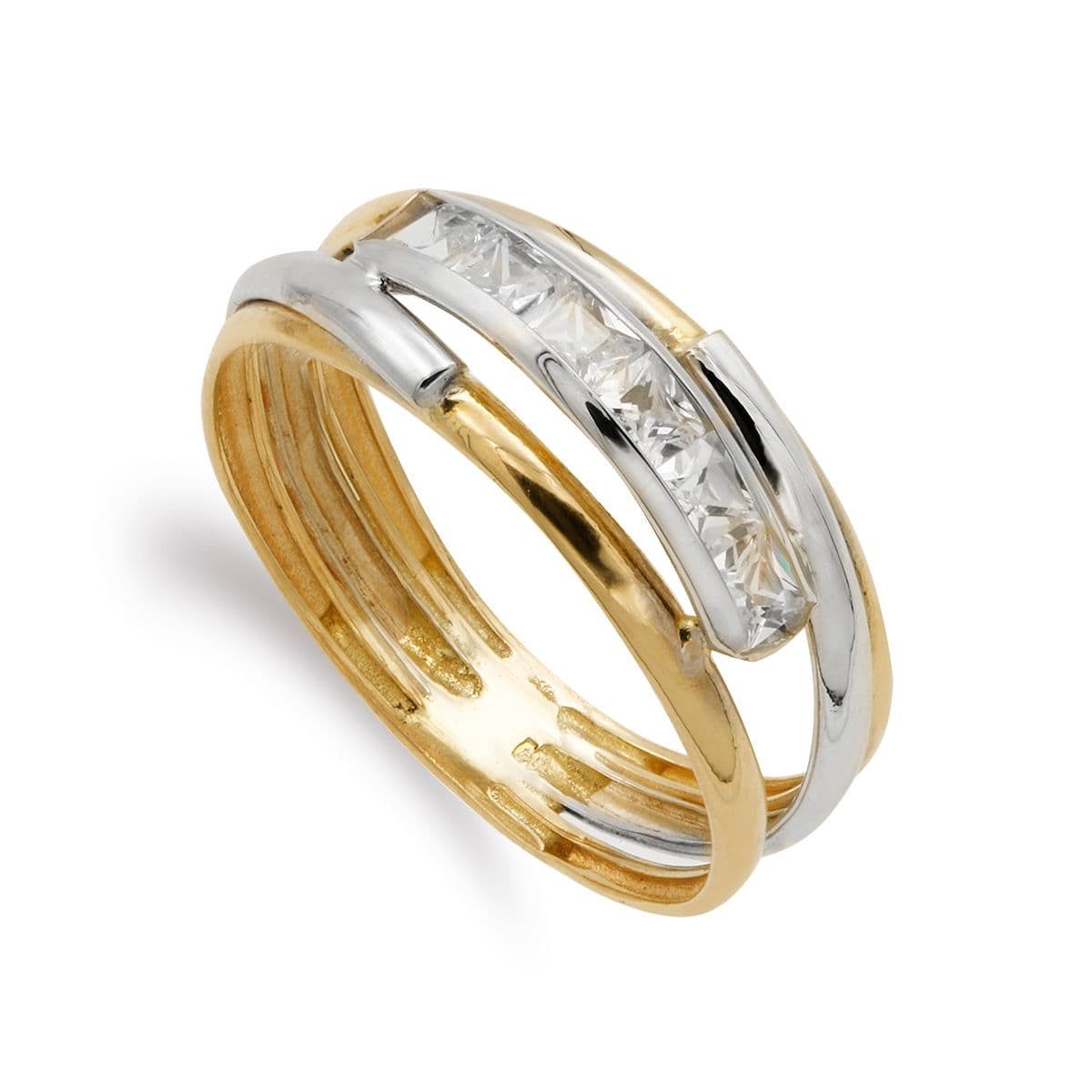 9K SORTIJA ORO BICOLOR BANDAS CON CIRCONITAS EN CARRIL. ANCHO: 6;5 MM