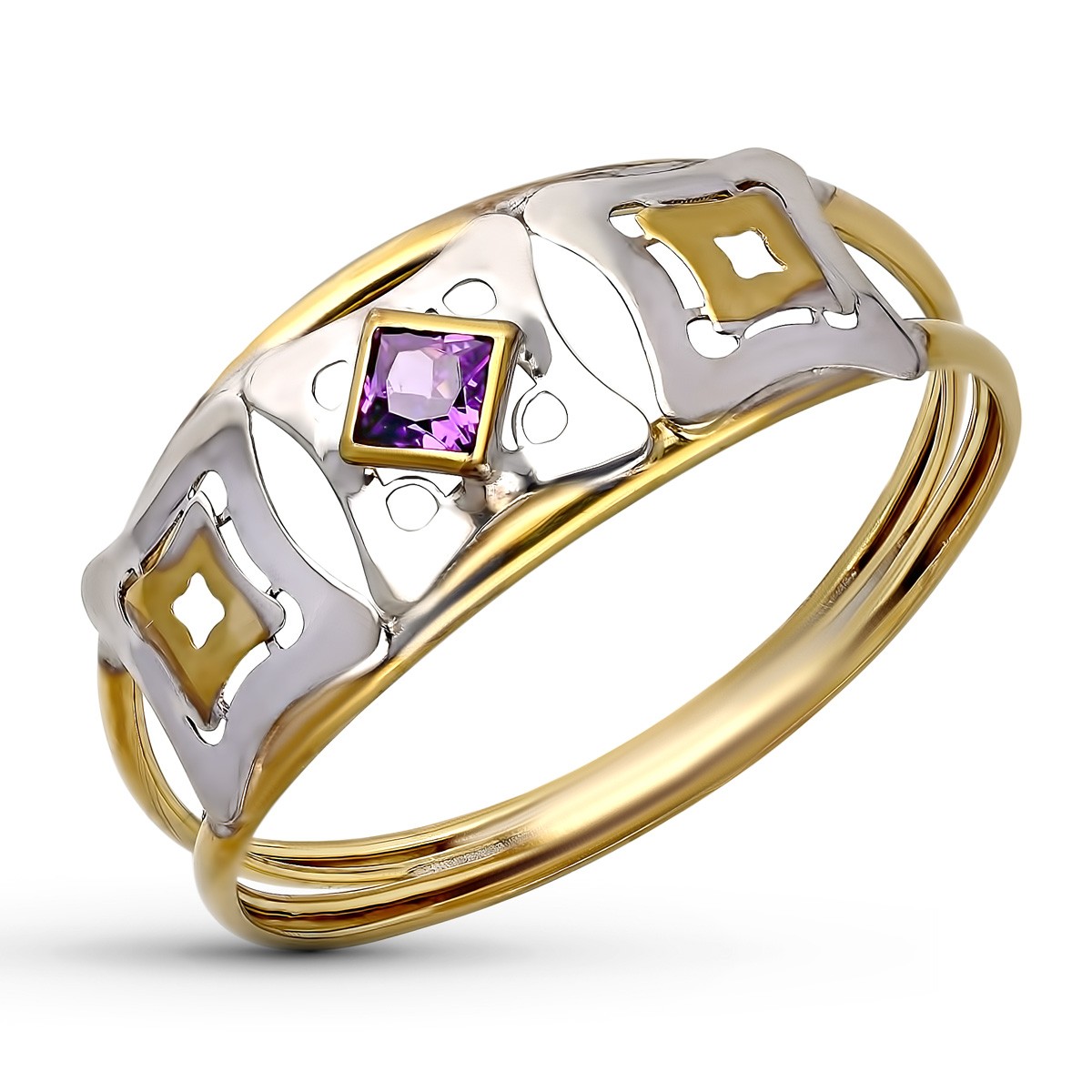 9K SORTIJA ORO BICOLOR DOBLE CUERPO CALADA CON CIRCONITA AMATISTA. ANCHO: 8 MM