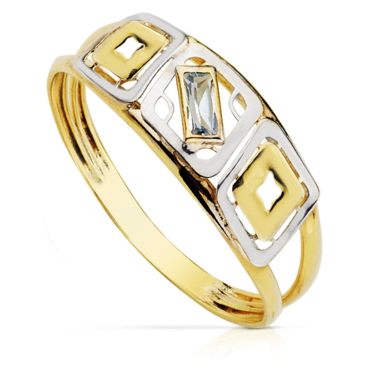 9K SORTIJA ORO BICOLOR DOBLE CUERPO MOTIVO CALADO CON CIRCONITA AMATISTA...