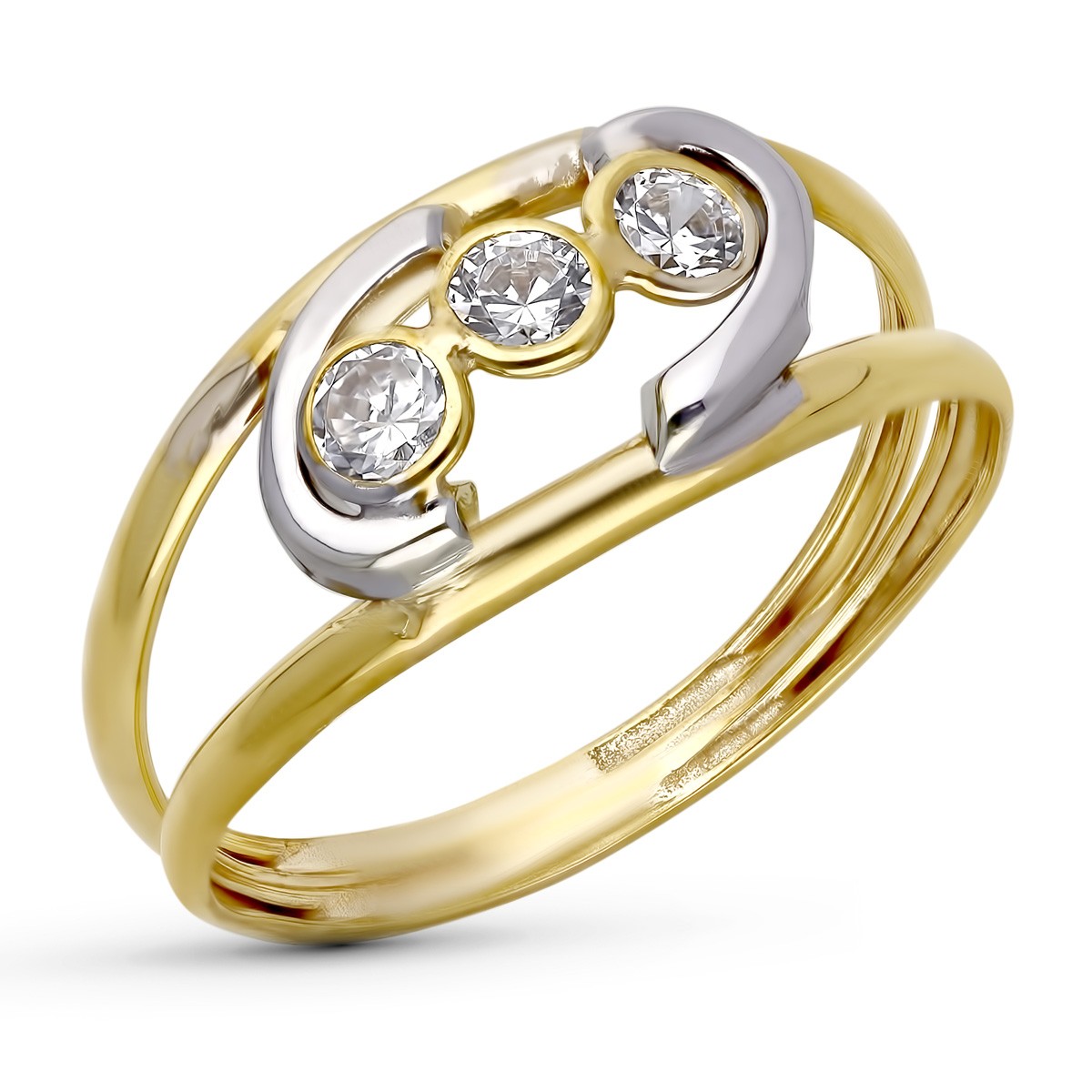 9K SORTIJA ORO BICOLOR DOBLE CUERPO MOTIVO CON CIRCONITAS. ANCHO: 8;5 MM